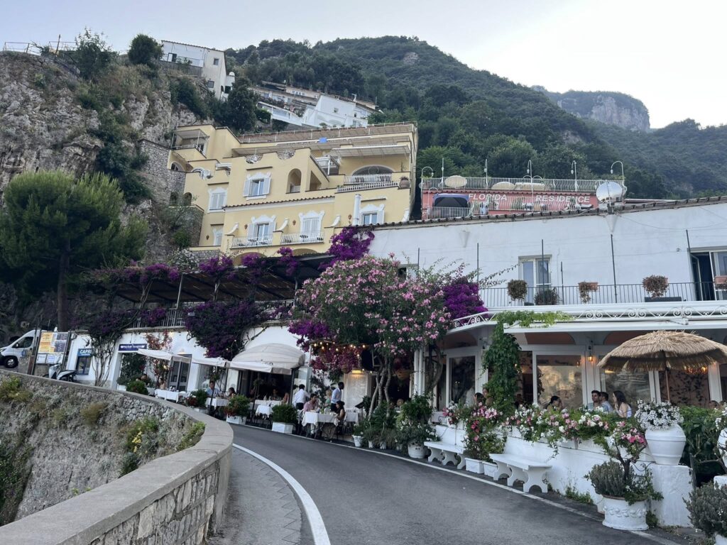 Should you have transportation, a visit to the Costa di Amalfi.  It is a nice drive north from Naples.  To enjoy the water below along the wavy roads that hug along the hills is breathtaking. The roads are narrow and the driver, along with passengers, will get a scare here and there from oncoming traffic.  While at Positano or any other beach area along the Amalfi coast is costly and not worth it.  For 3 beach chairs and an umbrella cost 120 euros.